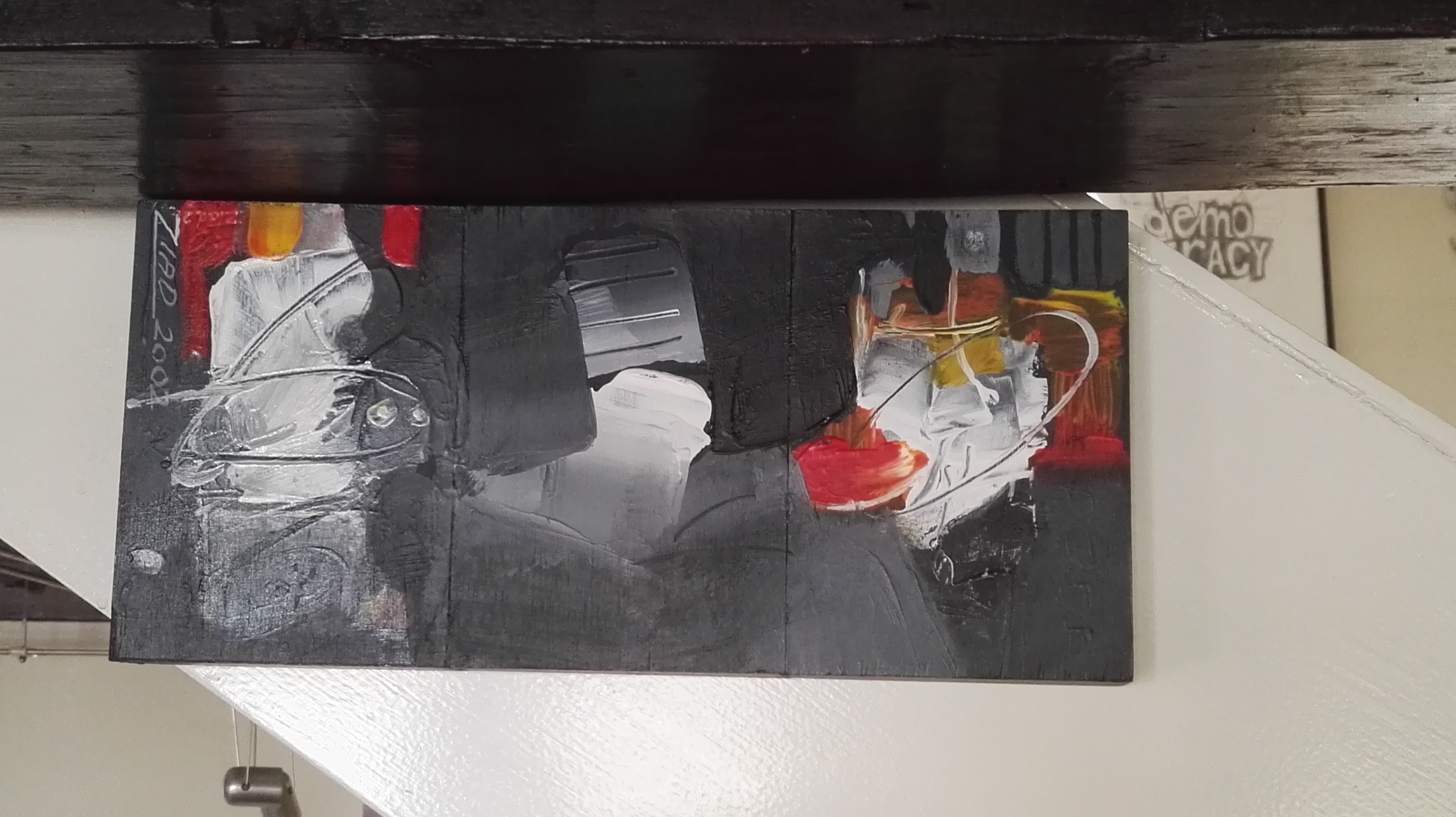 een mooi initiatief van de in Nederland wonende kunstenaar Amjad Kawish Alfrajje, om een aantal collega’s van hem uit Irak hier te exposeren en aandacht te vragen voor de situatie voor kunstenaars in Irak, na de Amerikaanse inval