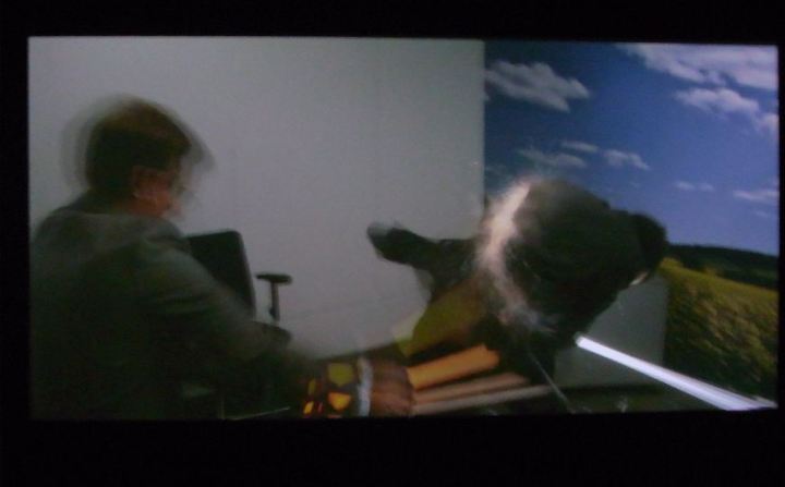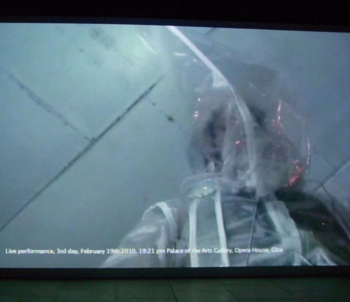 On the screen a work of Mahmud Sabri, one of the most experimental Iraqi artists in history