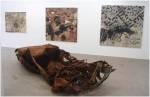 Although he opposed another American war against Iraq, with an uncertain outcome for its people, the end of the Ba’athist regime made it possible to visit his home country after many years of exile. In the autumn of 2003 he visited Iraq for the first time since his long absence in exile. His visit to iraq made a great impression and also influenced his work after. In the last series of paintings he made his use of colours changed dramatically. The explosive use of intense shades of red were replaced for a use of sober browns and greys. The dynamic compositions were changed in regular constructed forms. Also these works, from his last series, are represented on this exhibition.