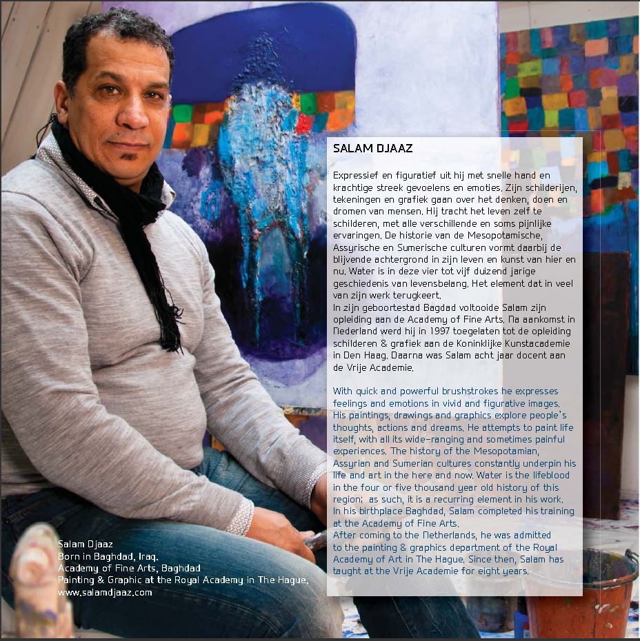 Mowaffk al-Sawad komt uit Irak, maar is al geruime tijd actief in Nederland, als dichter, schrijver en voor deze gelegenheid het meest relevant, ook als beeldend kunstenaar. Het meest bekend is hij geworden van zijn brievenroman ‘Stemmen onder de zon’ (Uitgeverij de Passage, Groningen, 2002). Verder heeft is zijn poëtische werk in verschillende dichtbundels verschenen. Zo lang hij actief is geweest als dichter heeft hij ook geschilderd, al is het pas sinds kort dat hij met dit werk naar buiten treedt.
