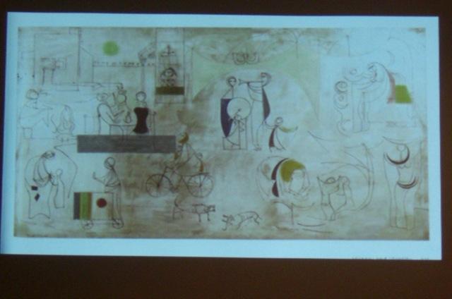On the screen a work of Shakir Hassan al-Said, whose style influenced artists all over the Arab and even the islamic world