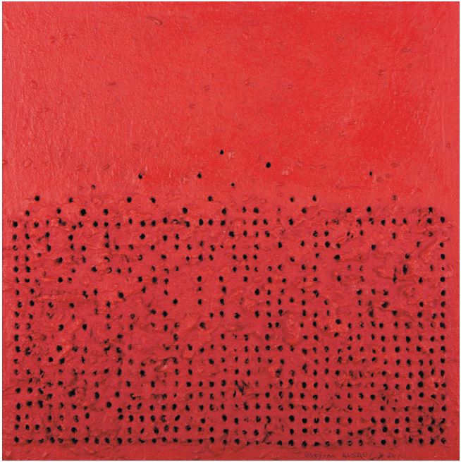 Het hier getoonde werk gaat meer over de recente geschiedenis van zijn land. Alsaedy maakte deze assemblage van lege patroonhulzen na zijn bezoek aan Bagdad in de zomer van 2003, toen hij na meer dan vijfentwintig jaar voor het eerst weer zijn geboorteland bezocht. Vanzelfsprekend is dit werk een reactie op de oorlog die dat jaar begonnen was. Maar ook deze ‘oorlogsresten’ zullen uiteindelijk wegroesten en verdwijnen, waarna er slechts een paar gaten of littekens achterblijven.