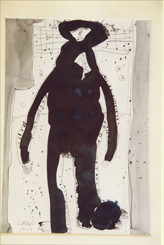 The motive of his bare feet is not the only figurative element in his work. In many of his paintings and drawings there are some more or less anthropomorphic elements, often molten together with structures with the appearance of liquid metal. The theme of man and machine plays an important role in the expressive works of Ziad. Of course this is close connected to his own biography and history of war and imprisonment.