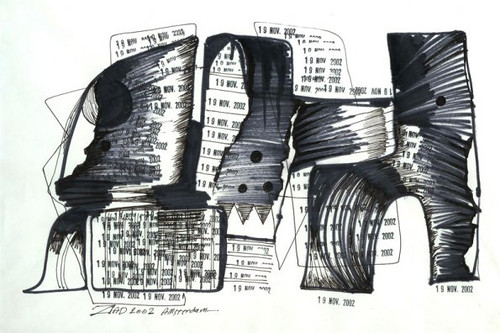 Ziad meant a lot for many, as an artist, but also as a human being and a friend. Within the community of exiled Iraqi artists in the Netherlands he played a very important role. In 2004 he initiated the Iraqi cultural manifestation in Amsterdam, with the title “I cross the Arch of Darkness”, a quote from a poem by his friend, the also in the Netherlands living Iraqi poet Salah Hassan ( ﺃﻋﺒﺭﻗﻮﺲ ﻟﻟﻆﻻﻢ ﺃﻮﻤﻰﻋ ﻟﻟﻧﻬﺎﺭ ﺑﻌﻛﺎﺰﻱ , from his collected poems, published under the title “A rebel with a broken compass”, 1997). In this festival visual artists, poets, musicians and actors came together to show the variety and richness of the Iraqi cultual life in exile to a Dutch audience.
