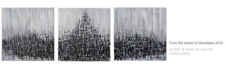 In his abstract works, always the main part of his artistic production, he sought the confrontation with the demons from the past. Although abstract there are often some recognisable elements, which are returning in several works during the years. A returning motive is the representation of his feet. This refers to several events from his own life. As a soldier Ziad had to march for days. When he was released from prison, together with some other prisoners, he was the only one who, although heavily tortured on his feet, who was able to stand up and walk. And his feet brought him further, on his long journey into exile, till he finally found a safe place to live and work.